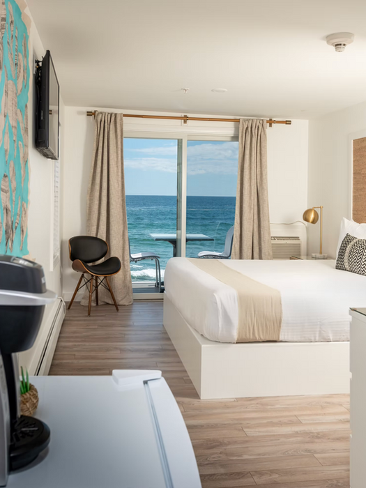 All rooms are on Long Sands Beach. Oceanfront rooms face the beach directly, beach club rooms are ocean-adjacent.